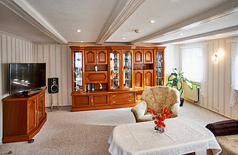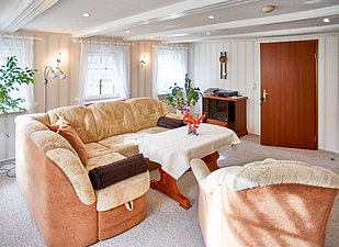 Lassen Sie sich durch helle, gepflegte und stilvoll eingerichtete Räume in der Ferienwohnung "Sternedomizil" zum Verweilen einladen! Sie wohnen unter anderem in der ehemaligen Webstube im Erdgeschoss des historischen Umgebindehauses. Das geräumige Wohnzimmer mit den sichtbaren Deckenbalken der Blockstube steht unter Denkmalschutz und bietet ausreichend Platz für Gäste und ausgelassene Spielabende.